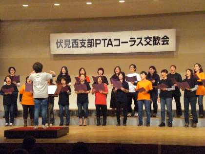 11月2日の土曜日,伏見西支部PTAコーラス交歓音楽会が呉竹文化センターで開かれました。支部の16校が参加する中,明親小学校PTAは「BELIEVE」と「怪獣のバラード」を素敵なハーモニーで歌い上げました。