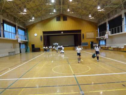 体育館では,バドミントン部が活動していました。