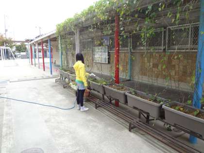 環境委員会の子どもが水やりをしていました。