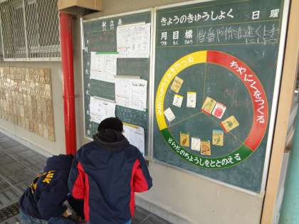 給食委員会の子どもたちが献立黒板の作成をしていました。