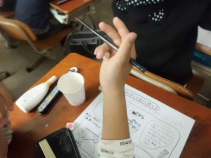 おはしの持ち方を直すのは今です!ぜひお家でも練習して,おはしを使いこなせる人になってくださいね。