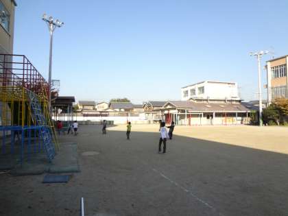 朝休み,グラウンドではたくさんの子どもたちが元気よく遊んでいます。