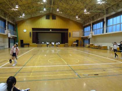 体育館では,バドミントン部が活動していました。