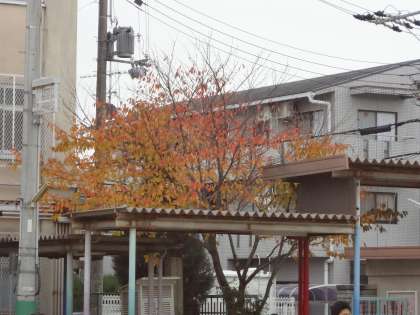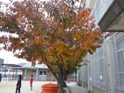 学校の木々がきれいに色づいています。