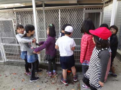 休み時間には,飼育小屋の前にたくさんの子どもたちがいました。