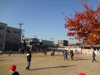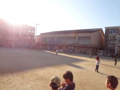 グラウンドで元気よく遊んでいます。