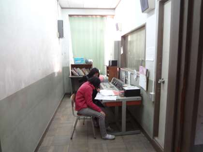 放送室では,放送委員会の子どもたちが放送をしていました。