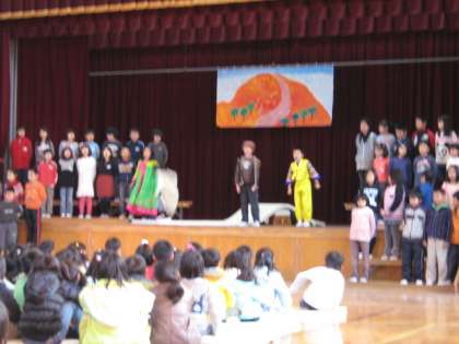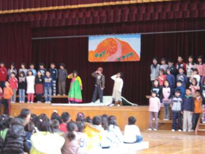 まずは,3年生が,国語の学習で学んだ内容を発表しています。