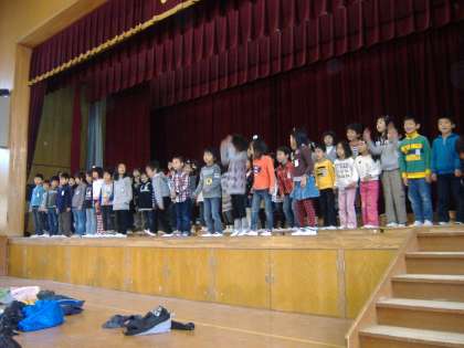 1年生は,国語で学習した「くじらぐも」を発表しました。保育所の子どもたちも応援に来てくれました。