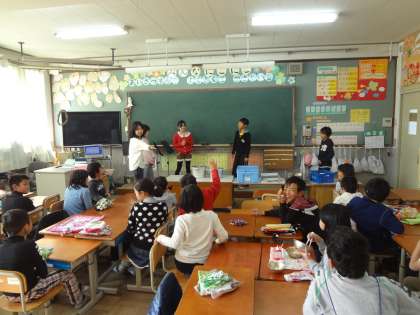 食事後,6年生がジェスチャーゲームをしてくれました。