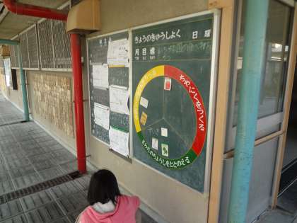 給食委員会の子どもが,毎日栄養黒板の作成をしています。