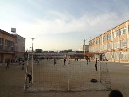 グラウンドでは,いろいろな学年の子どもたちが一緒に遊んでいます。