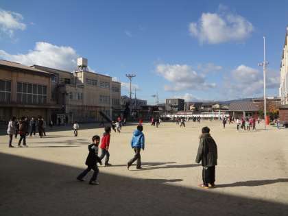 中間休みの様子です。 寒さに負けず,グラウンドで元気よく遊んでいます。