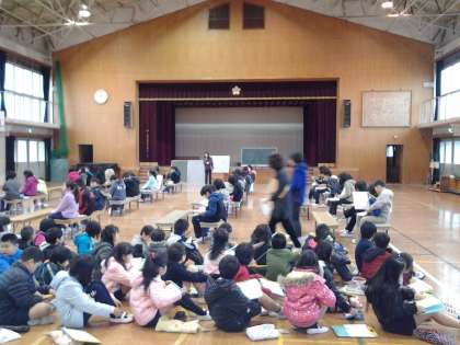 中学年が人権集会を行っています。