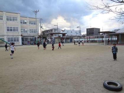 グラウンドで元気よく遊んでいます。