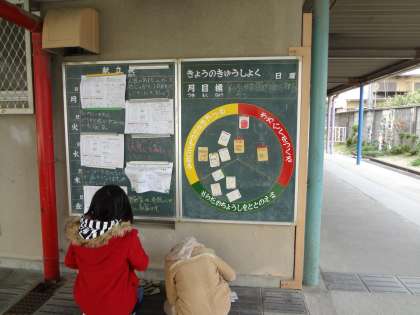 昼食後の様子です。 給食委員会の子どもが献立黒板の作成をしていました。