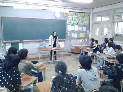 6年生の教室で伏見税務署の方による租税授業が行われています。