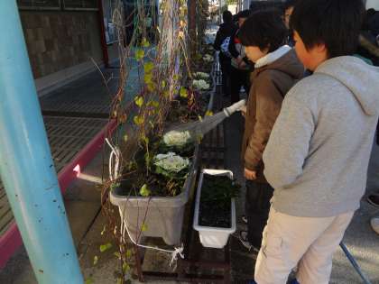 環境委員会の子どもたちが,水やりをしていました。