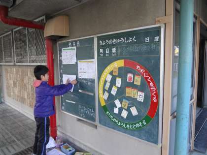 給食委員会の子どもが,来週の献立黒板を作成していました。