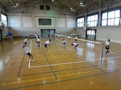 体育館では,バドミントン部が活動をしていました。