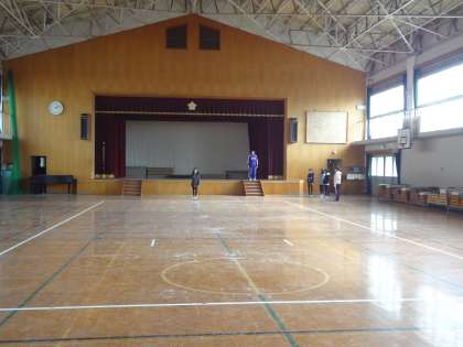 体育館では,運営委員会の子どもたちが,明日の児童集会の練習をしていました。