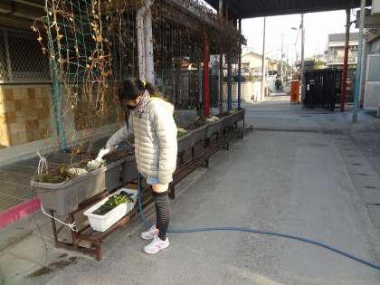 環境委員会の子どもが花の水やりをしていました。