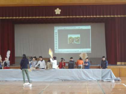 給食委員会の子どもたちが児童集会の練習をしていました。