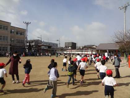 全校で一生懸命走っています。