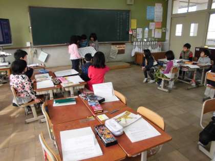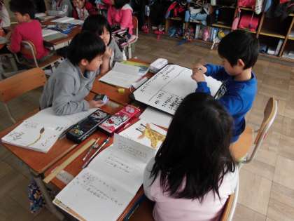 今日の国語の授業は4人にの班で司会を決めて話し合いをし、話し合った内容をまとめる活動をしました。今日のテーマはボールけりゲームでかつためには、どうしたらよいかです。どう自分の考えを伝えればいいか困っている場面も見られましたが、どの班も意見をまとめることが出来ました。