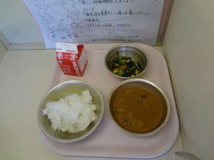 今日の給食は,チキンカレーでした。
