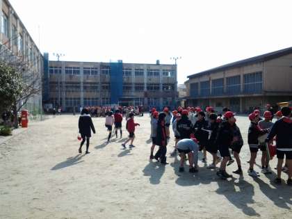 今日は,持久走大会です。グラウンドに整列しています。今から淀競馬場へ向かいます。