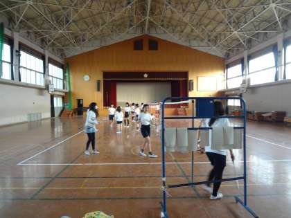 体育館では,バドミントン部が活動をしていました。
