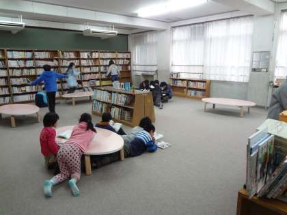 図書室では,子どもたちが読書をしていました。