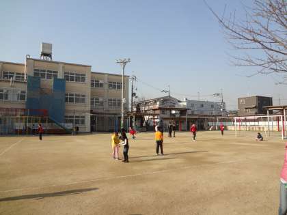 グラウンドで元気よく遊んでいます。