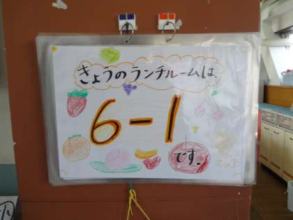 今日は,ランチルームでの給食でした。