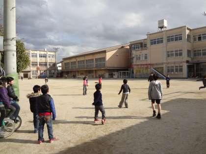 グラウンドでは,たくさんの子どもたちが遊んでいます。