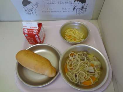 今日の給食は,ちゃんぽんでした。
