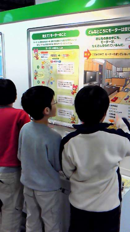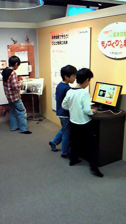 「ものづくり殿堂」では,ものづくりを体験する学習や展示物の見学ができます。写真は展示物を見ながら学習しているところです。