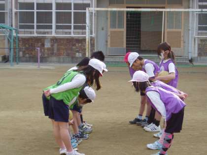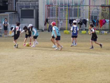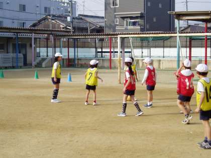 3年生は,体育でラインサッカーを学習しています。準備や後片付けも大切な学習です。試合の前後には,しっかりと挨拶をして,ゲームスタートです。