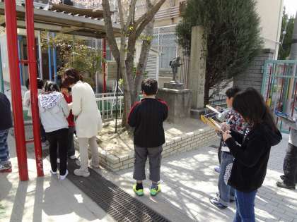 理科の学習で,さくらの観察を行いました。 花弁を見ながら,きれいだなと言っていました。