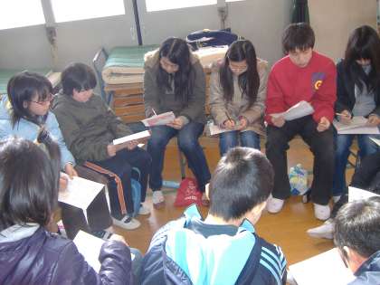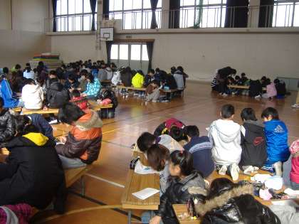 今日の4時間目,体育館で高学年の人権・道徳集会が開かれました。5年生と6年生が混じり合った少人数のグループを作り,与えられたテーマについて自分の考えを述べ合います。その後,各グループの代表が,自分たちの話し合った内容を全体に報告し合い,一人一人の考えを深めていきます。明親小学校では,低・中・高学年に分かれて,このような集会を行っています。