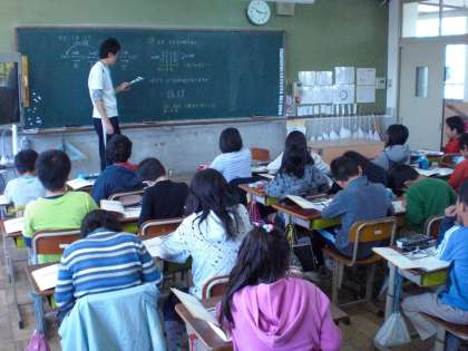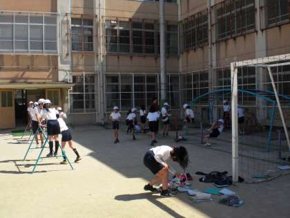 1組は整数と小数の学習を,2組は運動場で鉄棒の学習をしていました。