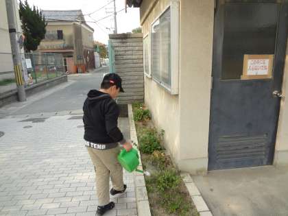 昨年度の環境委員会の子どもが水やりをしていました。