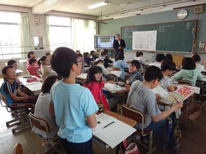 0417 6年生 授業参観 公開日 2014/04/17 更新日 2014/04/17 学校の様子 6年生は社会科「縄文の昔から古墳のくにへ」の単元で,今日は,黒板に貼られた大きなイラストから縄文の暮らしの様子を見つけていました。「電気がない」「そらそうやろ」「貝がいっぱい採れている」「季節はいつかな」などとお家の人の意見も交えながら縄文の暮らしに想いを馳せていました。楽しい歴史学習の始まりです。