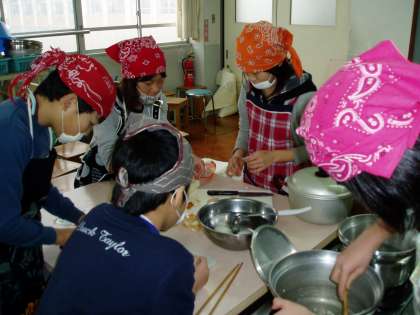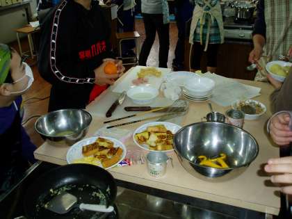 今日は6年生が家庭科の調理実習で朝食づくりにチャレンジしています。各班で栄養のバランス等を考えメニューを決めています。フレンチトーストやサンドイッチ等など,美味しく出来上がったことでしょうね。