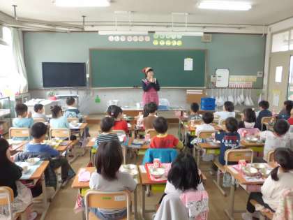 展示食は中学年の分量なので,低学年は展示食より少し少なめ・高学年は少し多めに配食をします。