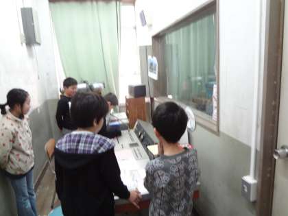 放送室では,放送委員会の子どもたちが放送機器の使い方を確認しながら放送を行っていました。
