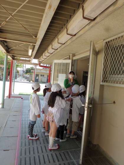 どの学年もエプロン・マスク・三角巾をしっかりつけて準備も上手に出来るようになってきました。