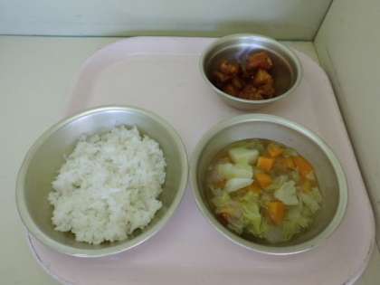 また,野菜のスープ煮も,じゃがいも・人参・キャベツ・玉ねぎの甘みがたっぷりで大変おいしかったです。