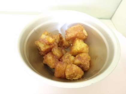 今日の献立は,カリカリに揚がった鱈を,さとう・トマトケチャップ・ウスターソースの特性ソースでからめて仕上ました。